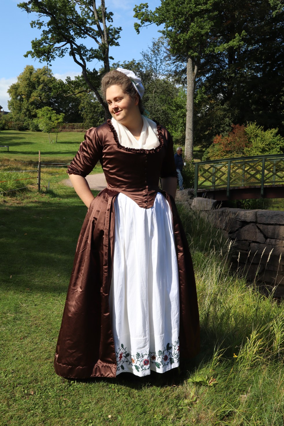 The inventory of Mrs. Ann Bamford includes lots of "night gowns". I think I've counted seven, most made from cotton or muslin, but some made up of fancy silk fabrics. The 18th century night gown was not a garment to sleep in, but closer to what we might call an evening gown. However, there is… Continue reading Bow-Chicka-Brown Gown!