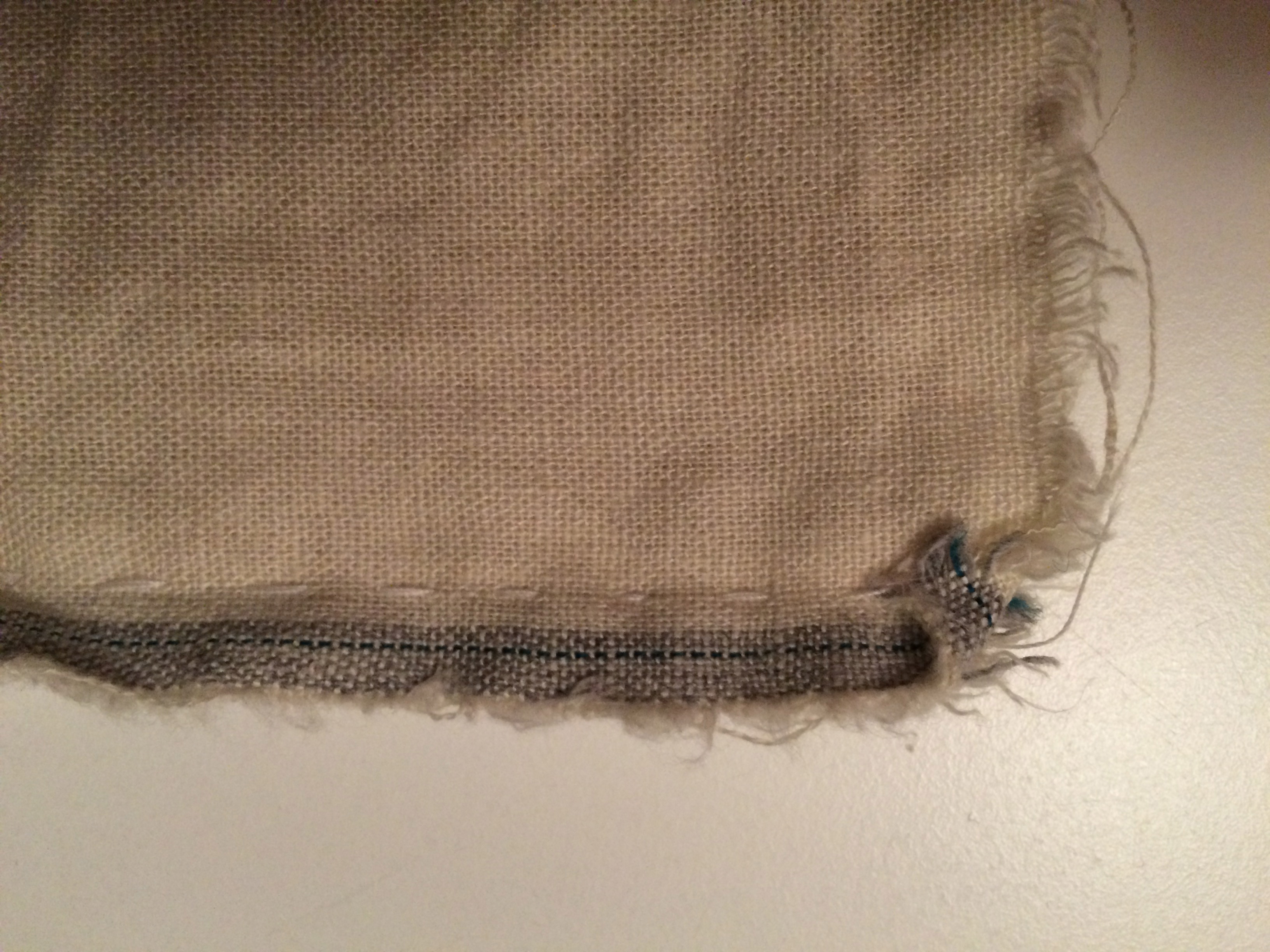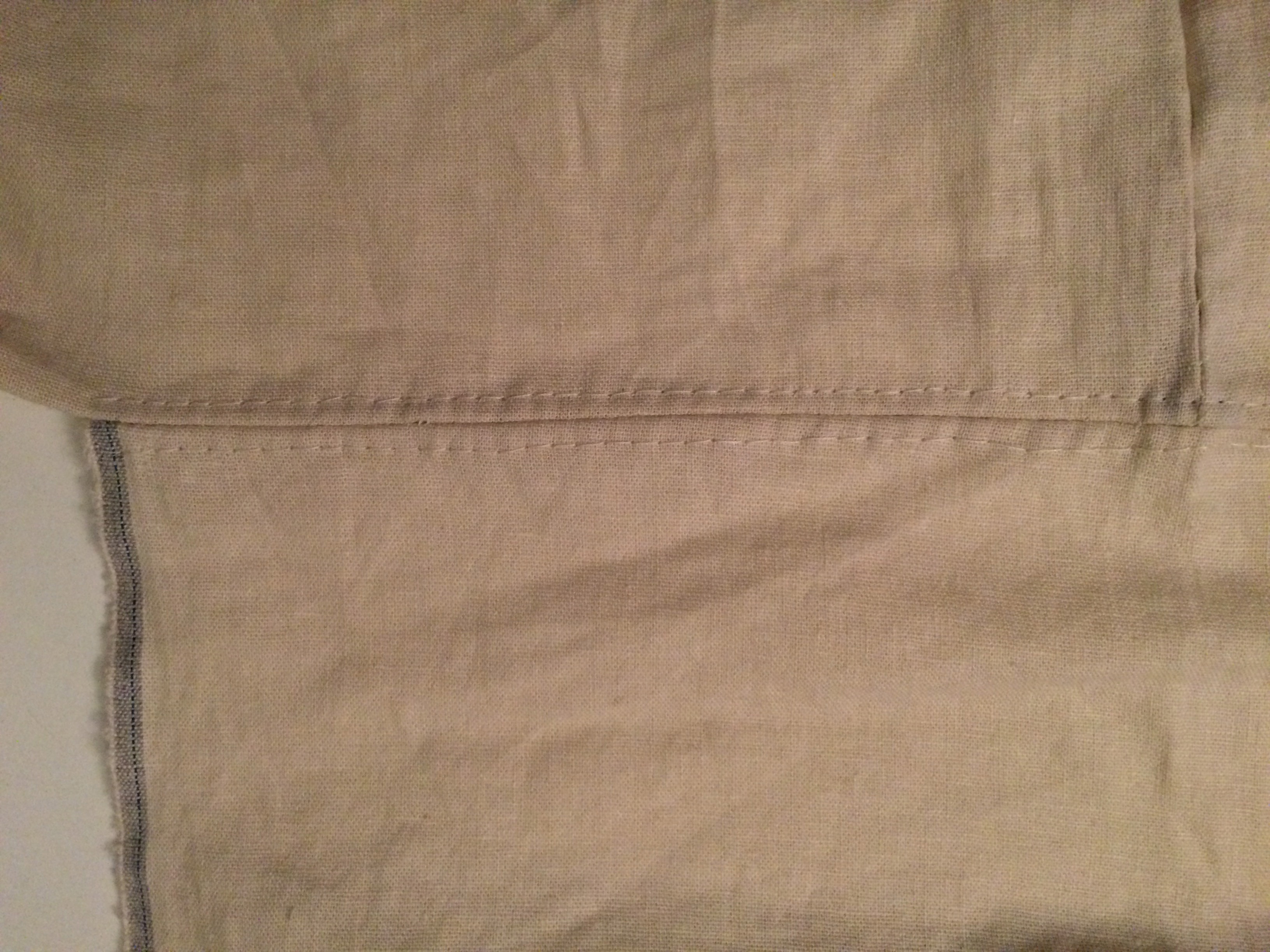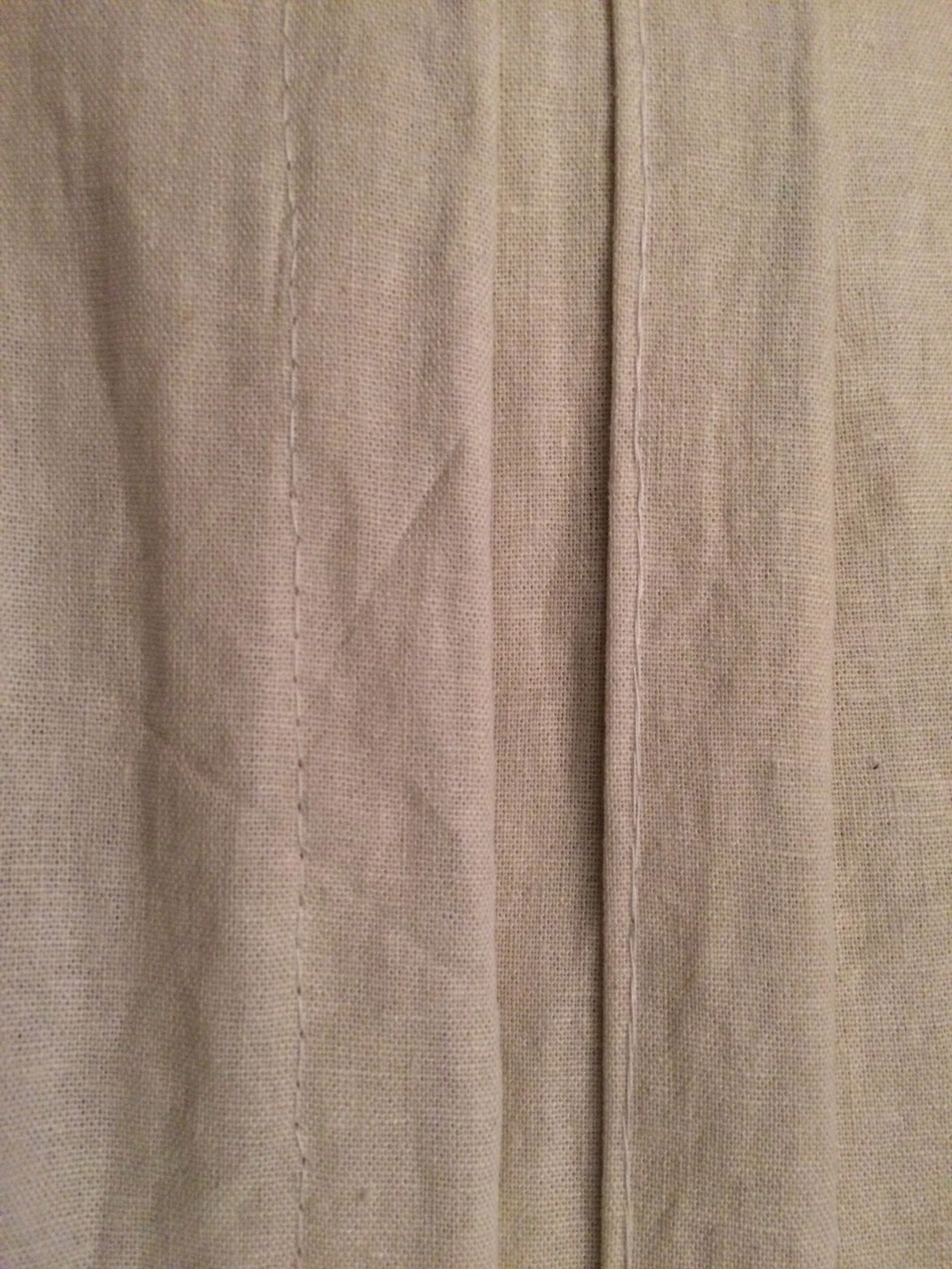 Cut away irregularities at the bottom, fold the raw edges in twixe, and sew down. The width of your fold is up to you, and depending on how long or short you want your dress to be. If you’re making a shirt or blouse, you do the same thing, but enforce the top of the slits with a few extra stitches.