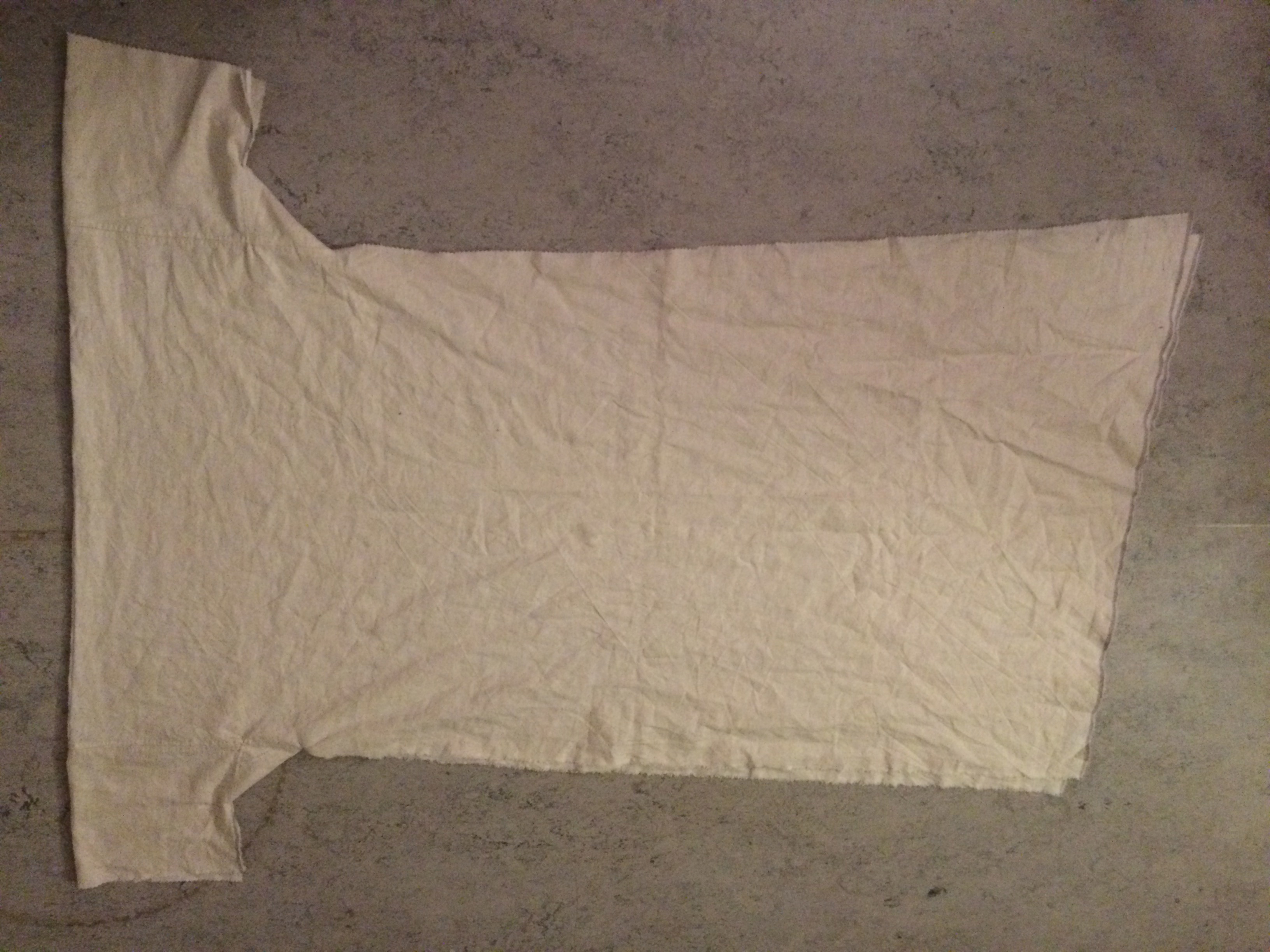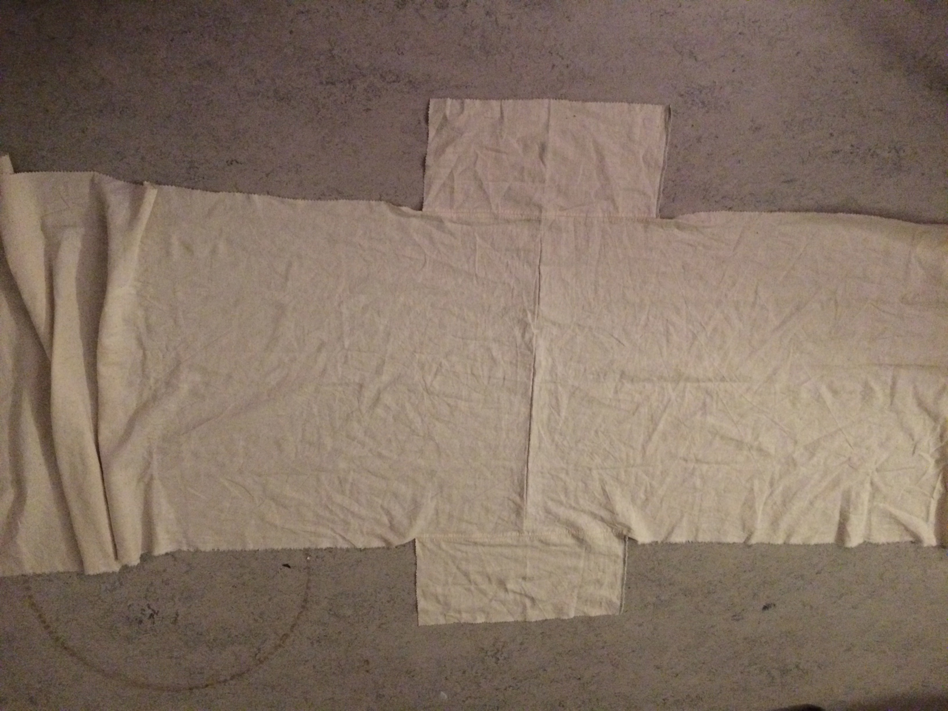 The body of the garment is here laid out, and the sleeves stitched on to the shoulder seams. With longer sleeves, this would look like a cross.