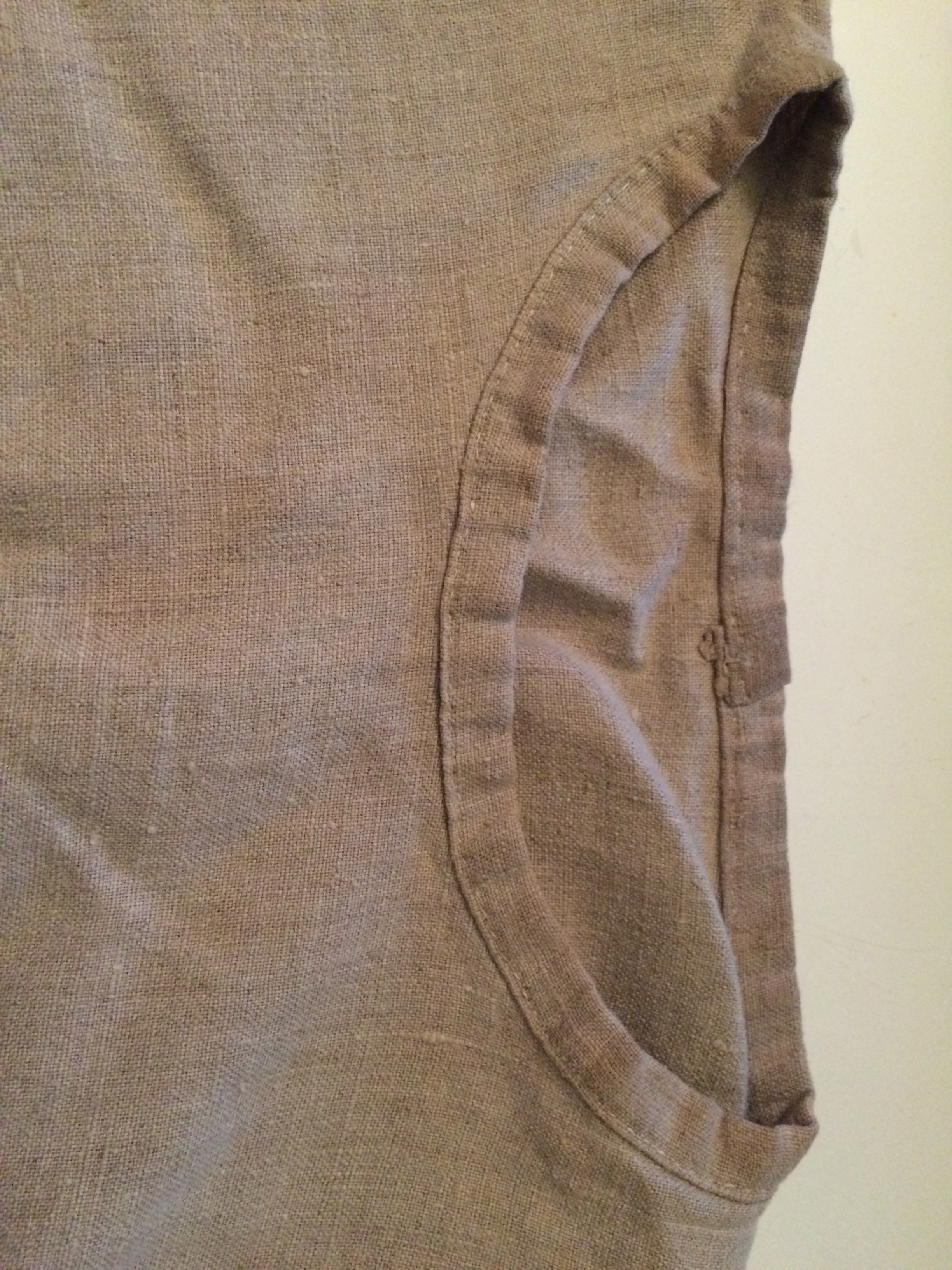 This is a chemise or underdress. It’s made much the same way I make most of my medieval tunics, using rectangles, squares and triangles, making the most of the fabric at your disposal. I use this general method for pretty much everything from viking tunics to early 20th century blouses.