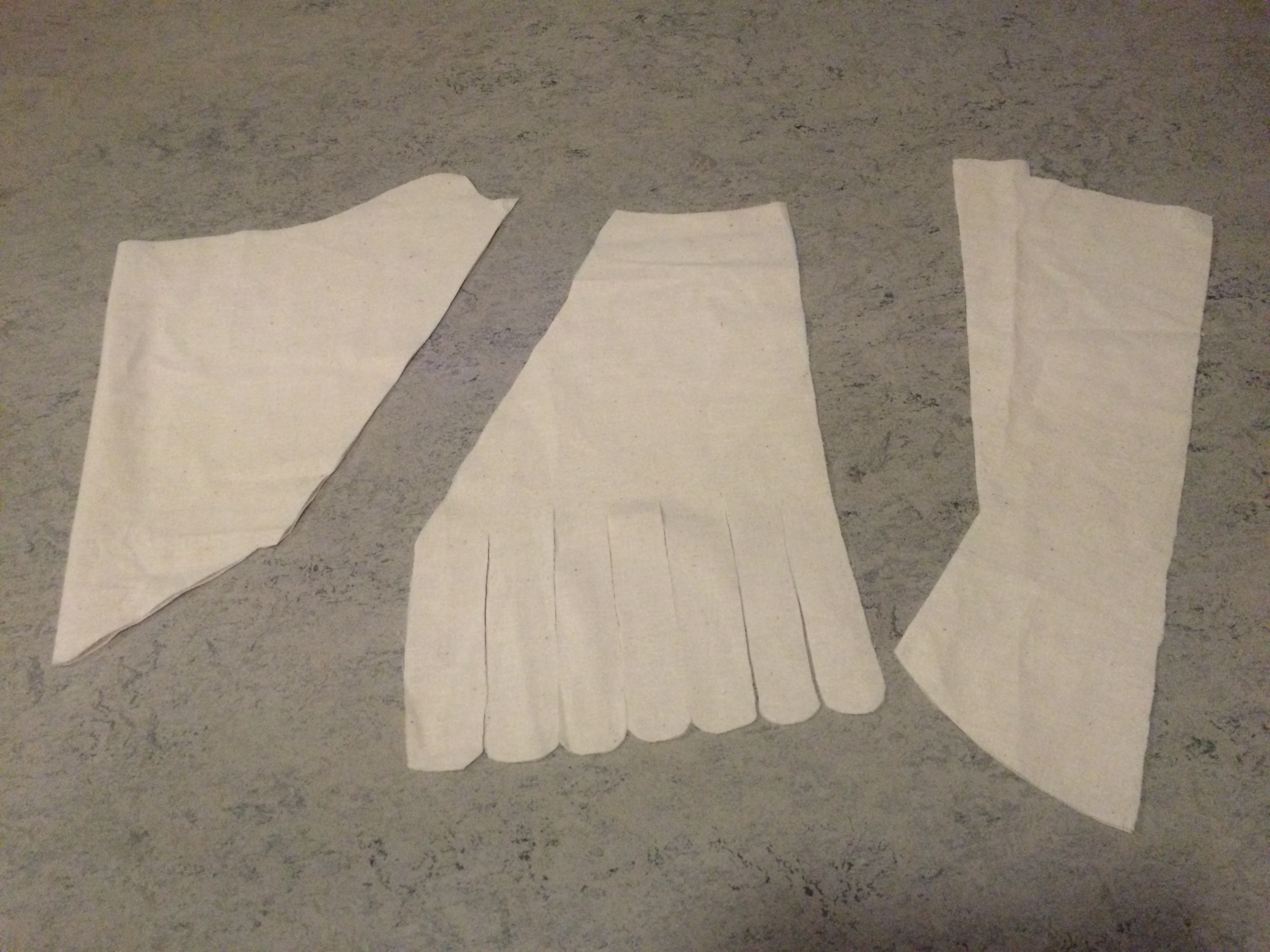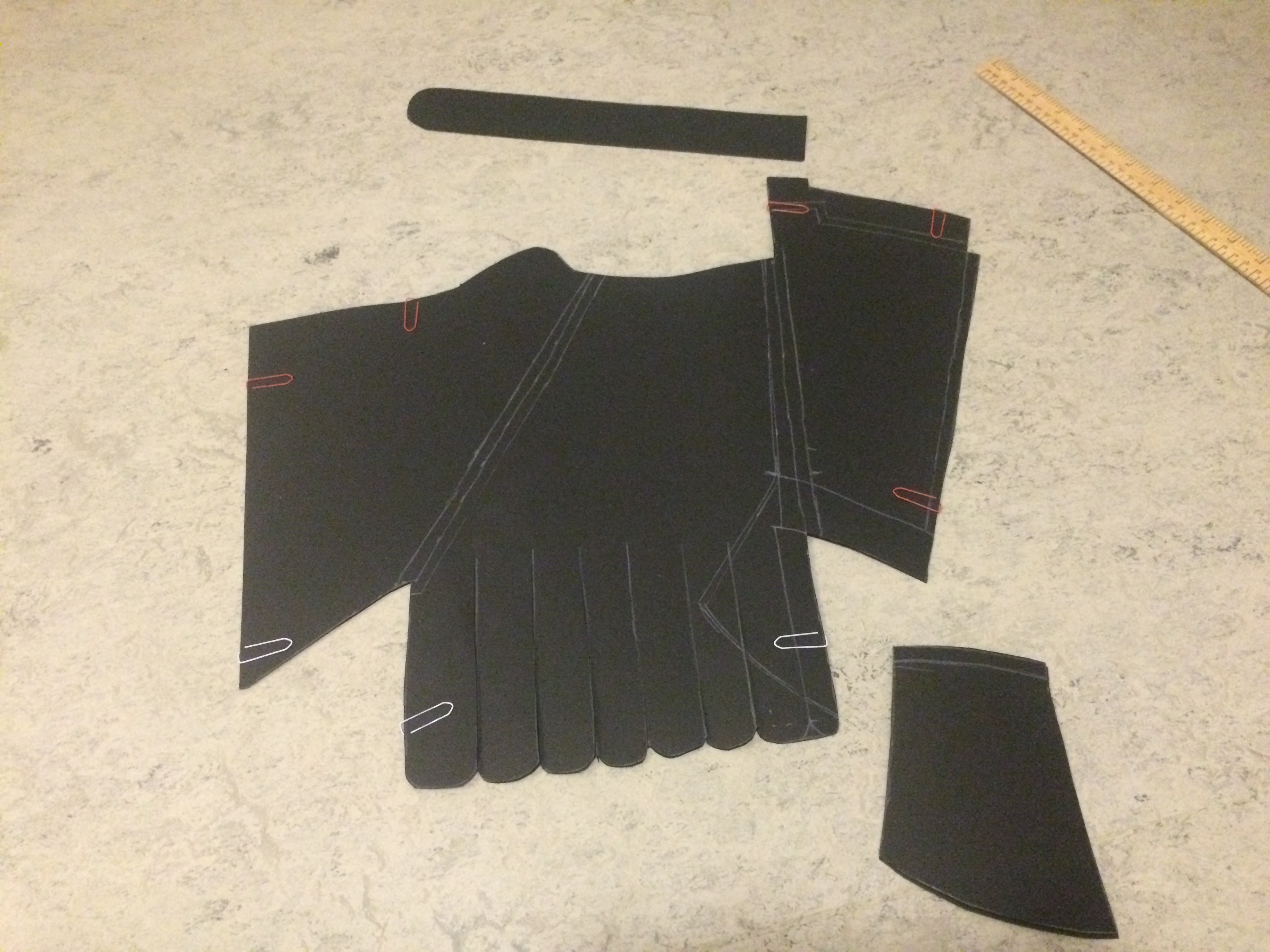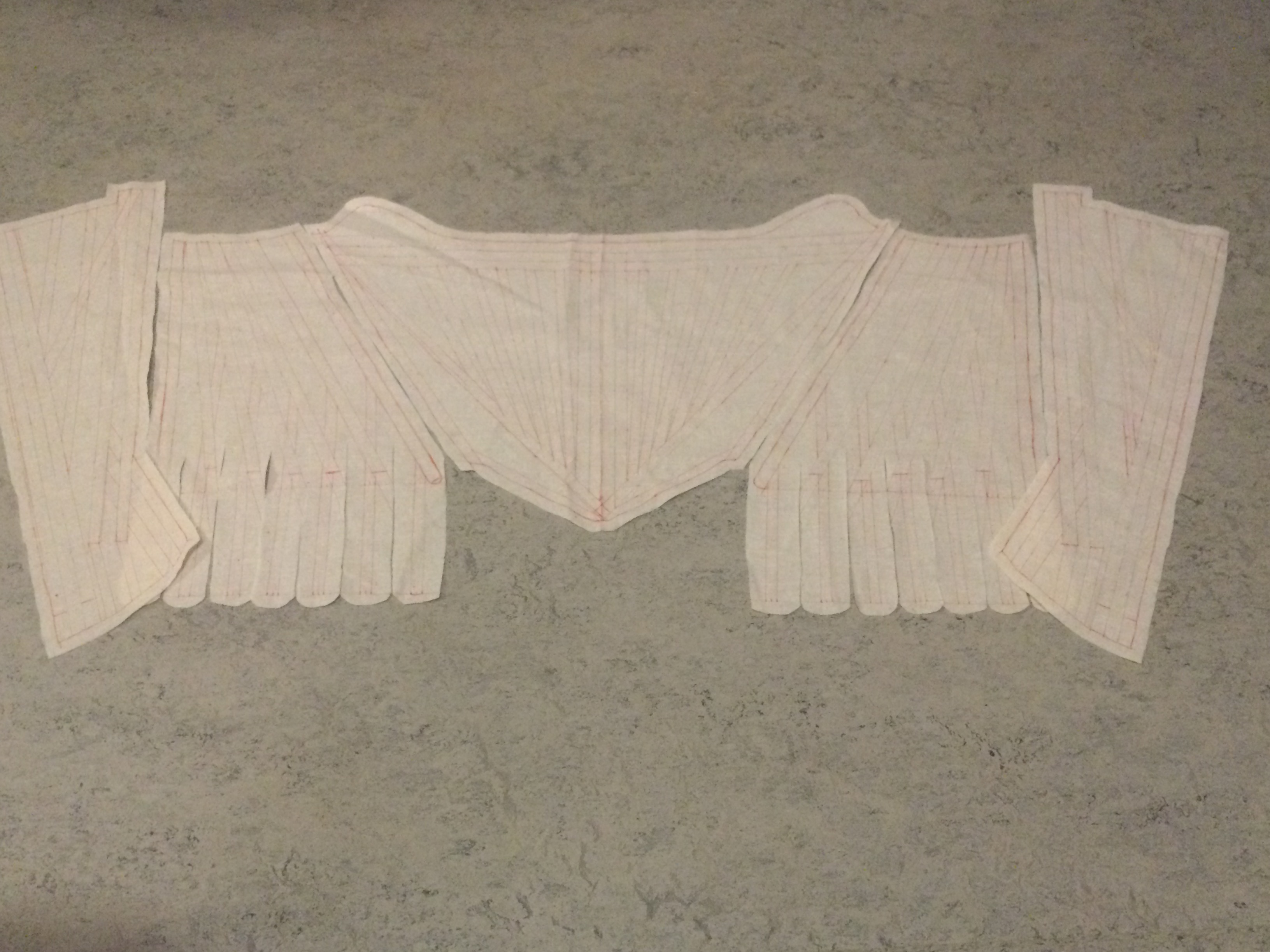 All my pieces! 19 bits in all! All the panels are made from three layers of fabric, the shoulder straps from two.