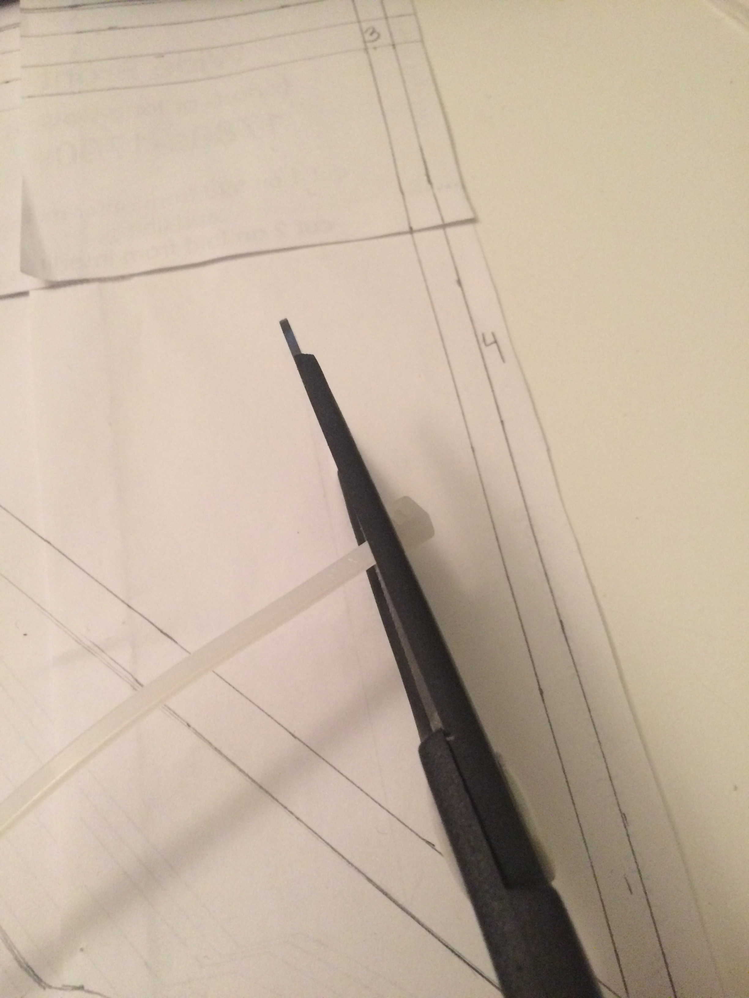 In places where there would be a lot of stress, I used some steel boning I had laying about. These come in finished lengths. However, I had to cut the strips myself. I put them down on the channel I was going to use them for, marked their length and cut them off.