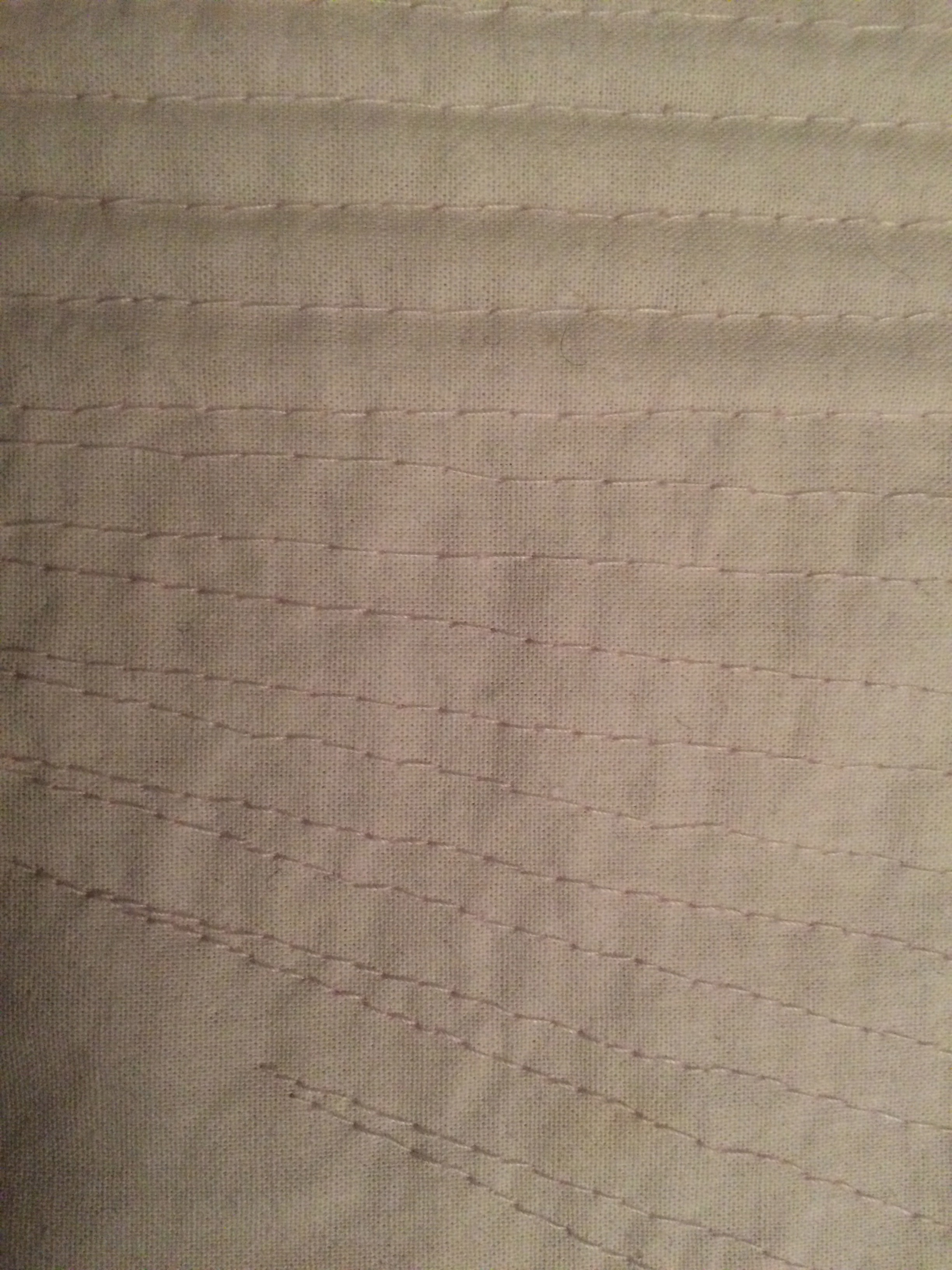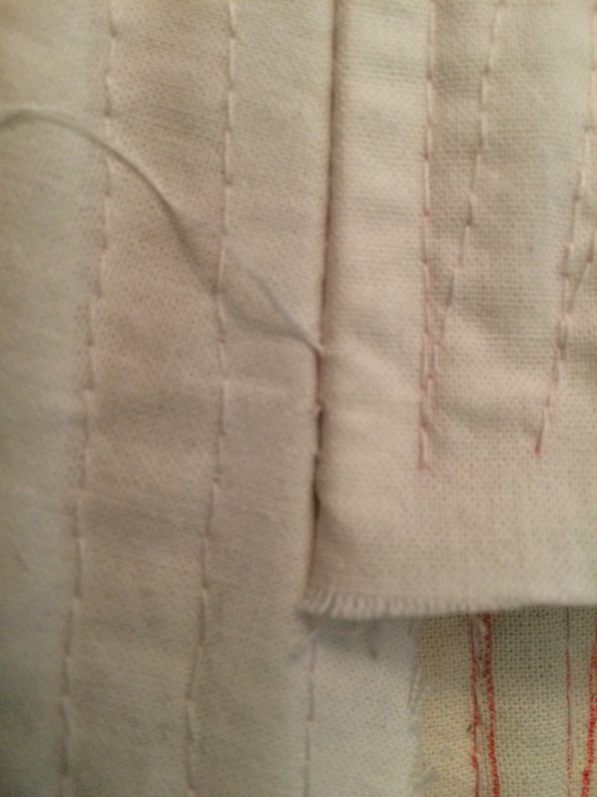 First, I placed the panels, right sides together, and sewed them together with backstitches and double thread.