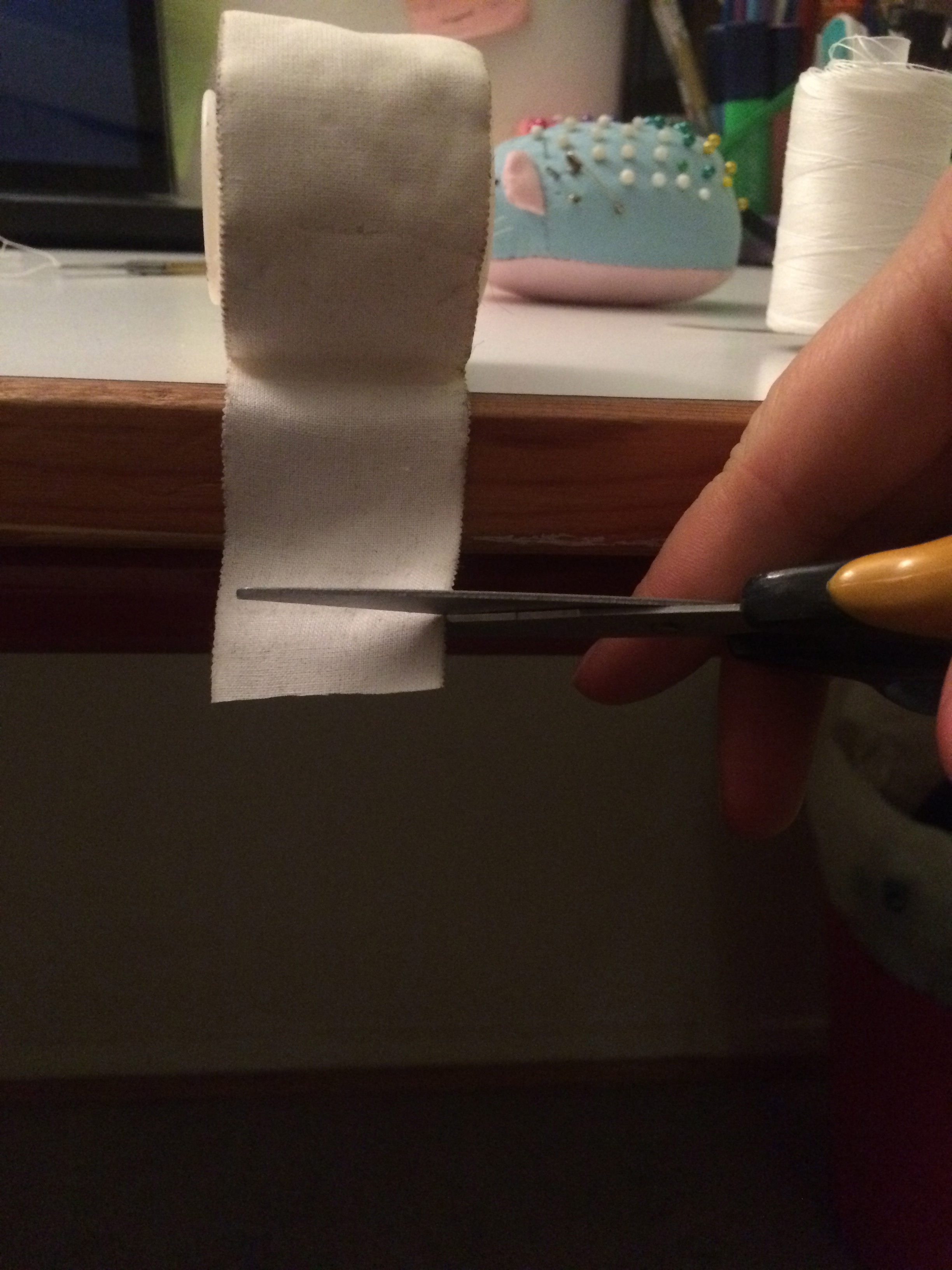 Fold the tape up. Because it’s cut on the bias, the tape will be a little elastic, and curve nicely along all non-straight edges.