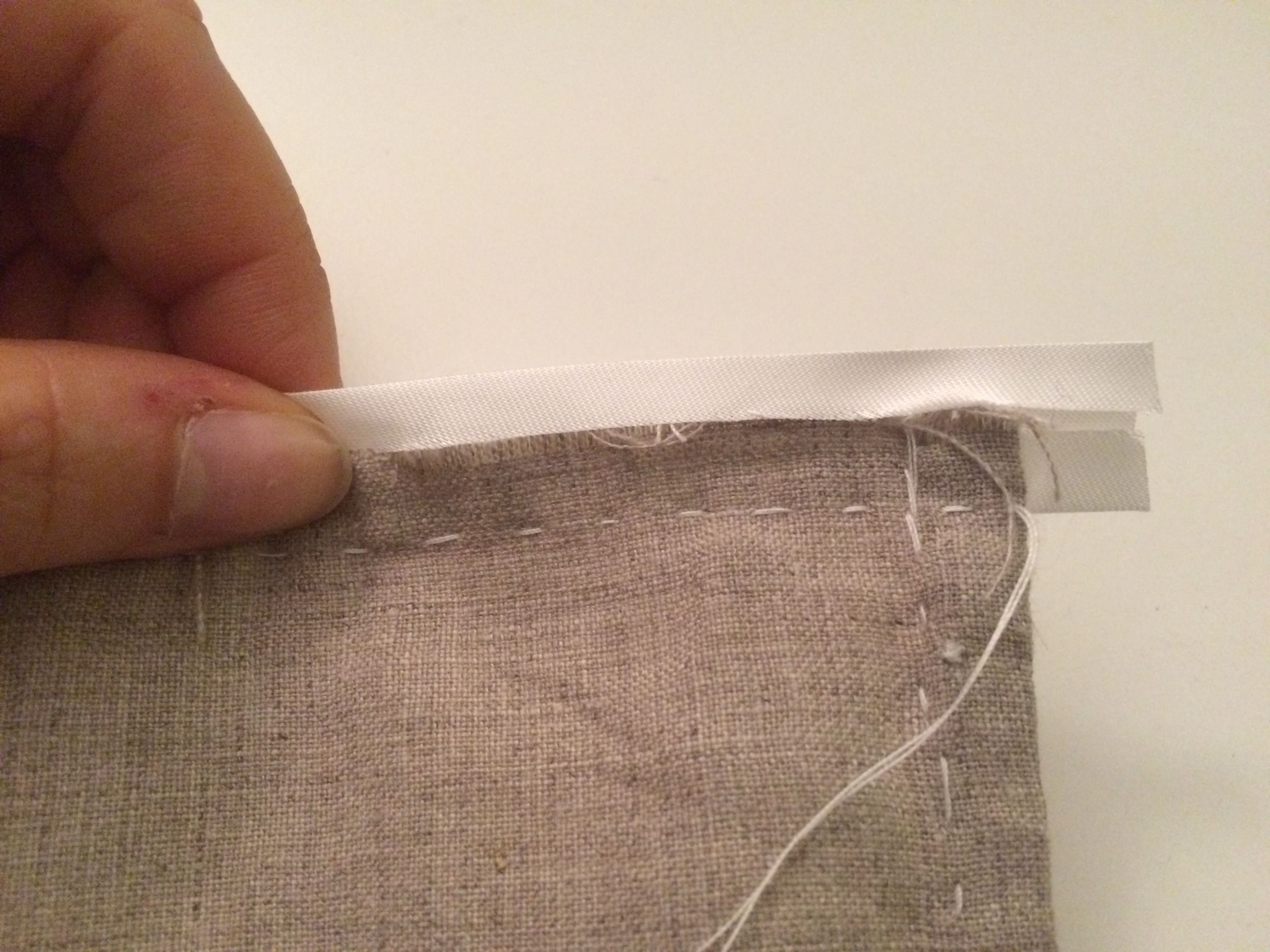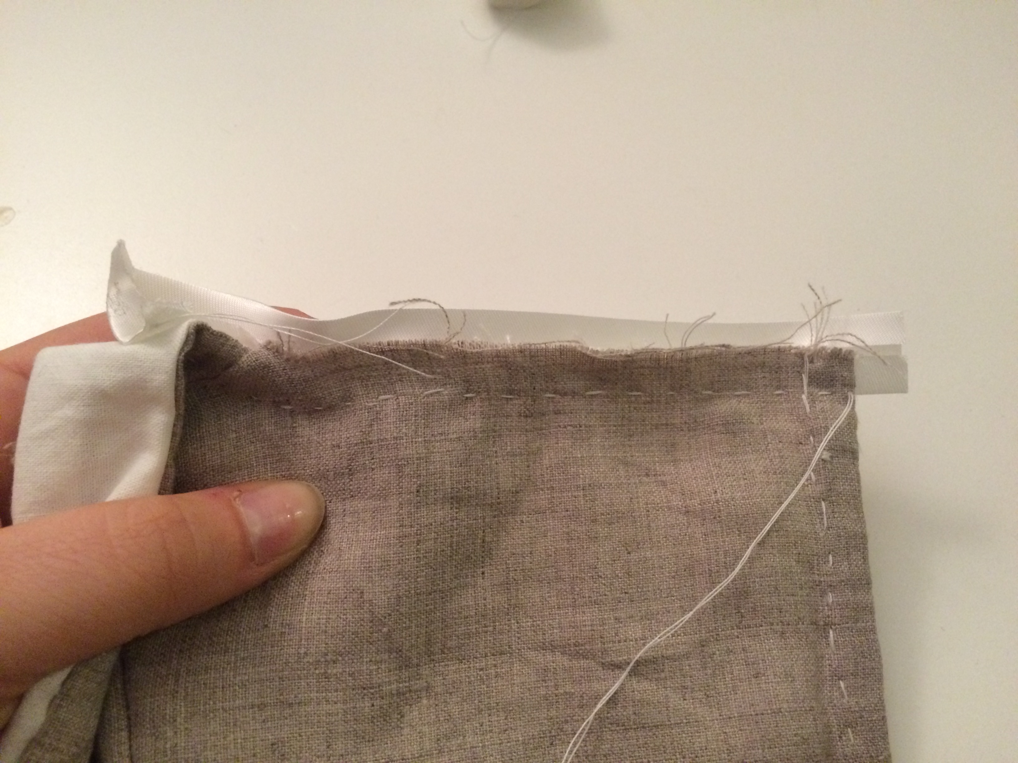 I stitched the lining to the shoulderstraps by laying them, right sides together, and stitching around the edges, before turning them and pressing them.