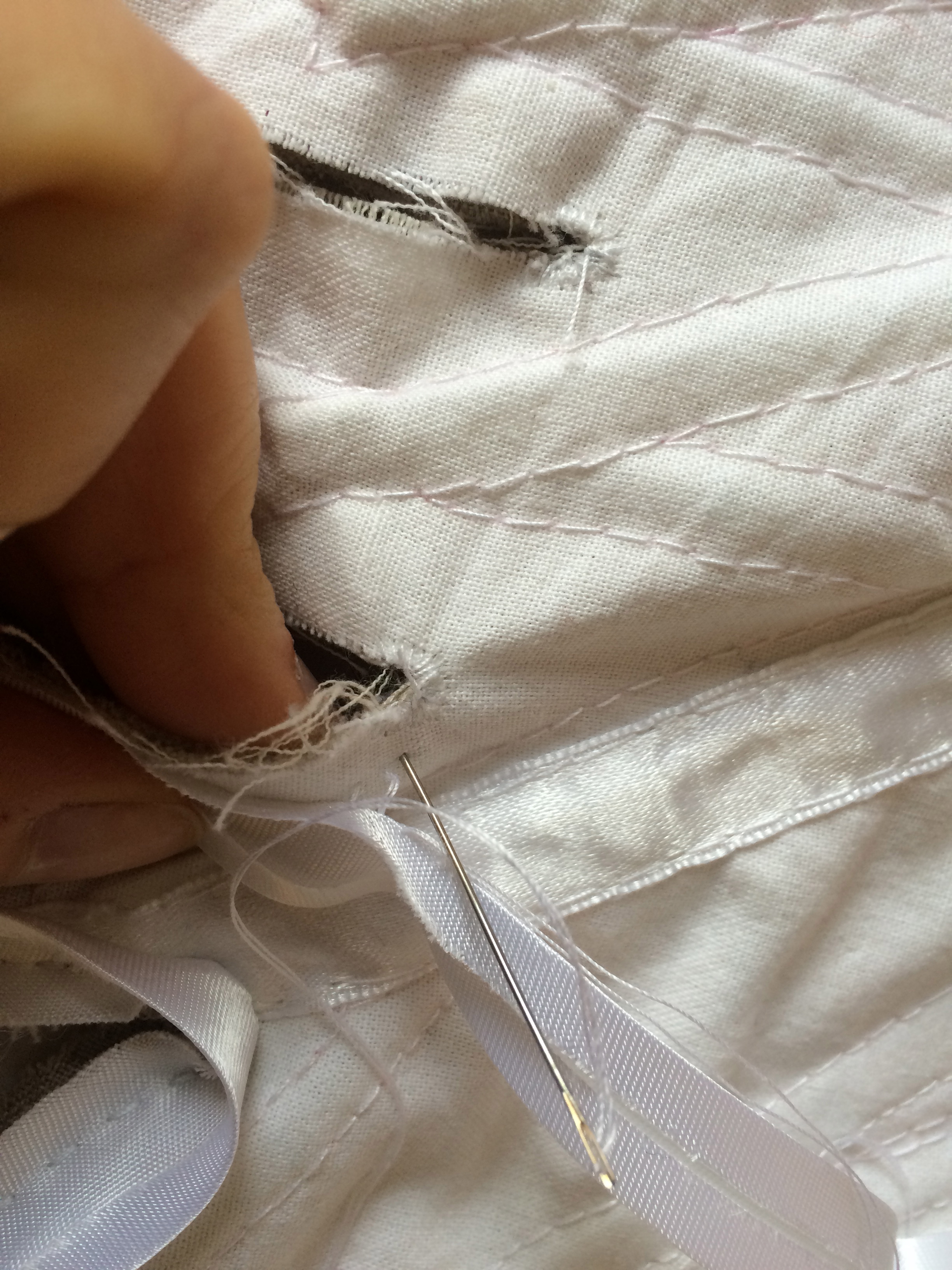 If the boning channels won the first prize for “things that took time on this project”, the stitching of bias tape around all the tabs won silver.
