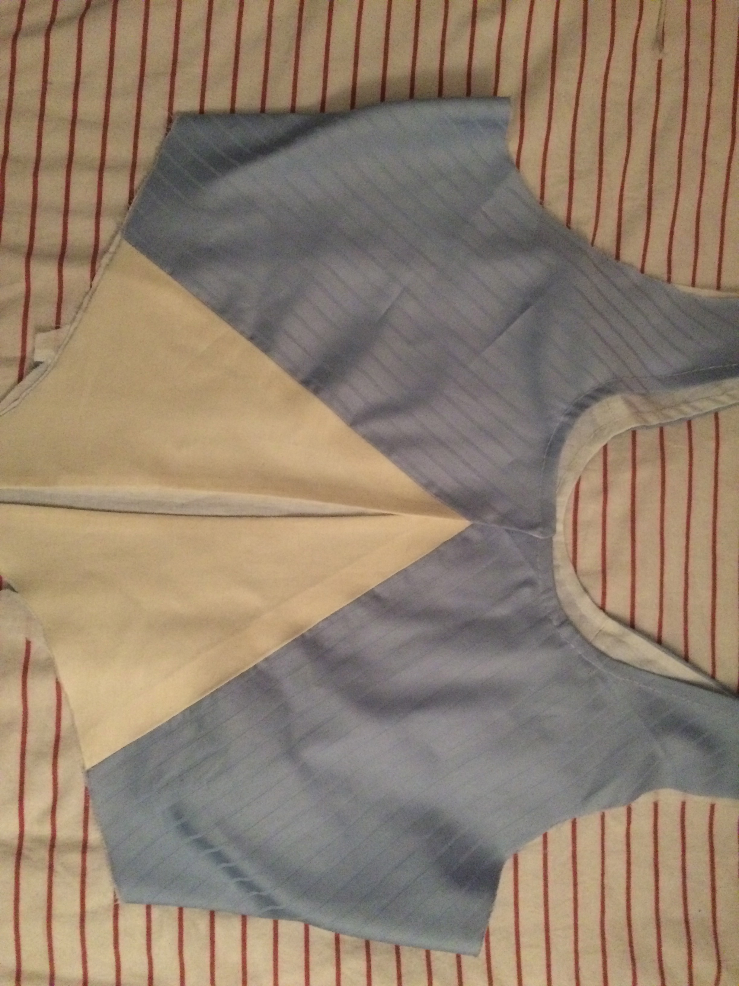 Closeup of front neckline before turning. The gaps on the top of the front opening is so that I can get a ribbon through.