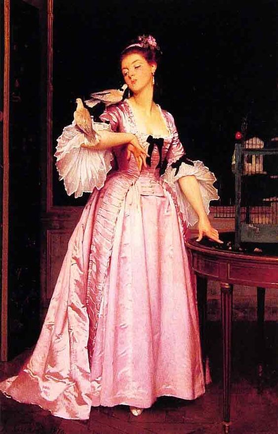 Now, when I fell in love with Caraud’s painting some years back, I was less aware of how contemporary fashion will always change the way artists depict old fashions, and while Caraud was born in 1821, when there were still people alive who remembered the wearing of grand Georgian gowns, he did most of his work between 1860 and 1900, when these garments were a strange and faint memory to most. He did like the 18th Century, most of his paintings seem to have been inspired by that period, but there are elements of the painting, such as the hairdo, the neckline, and the shape of the torso, that just scream 1890s evening wear to me. I therefore needed something more to base a sort-of-kind-of-reconstruction on.