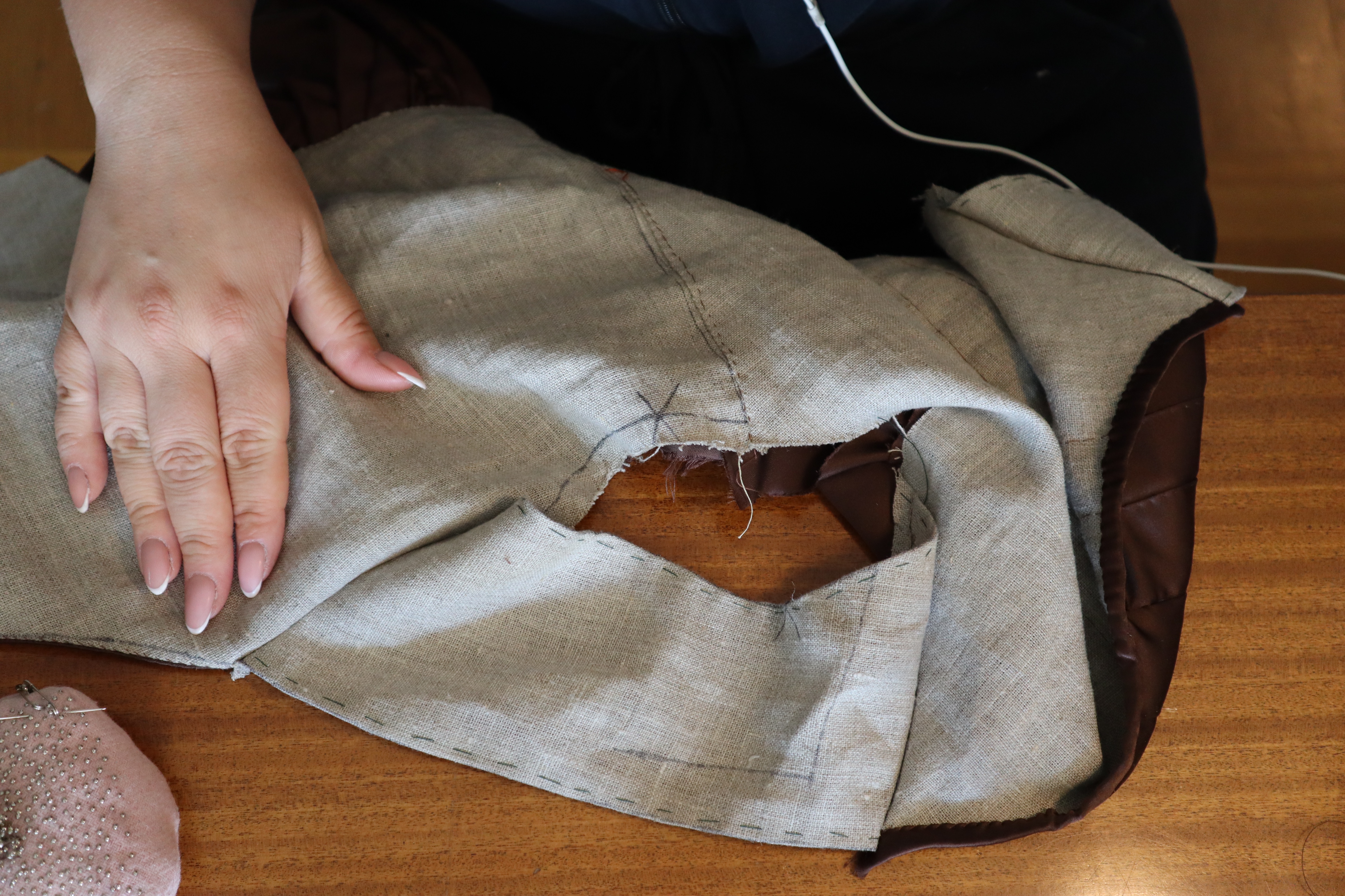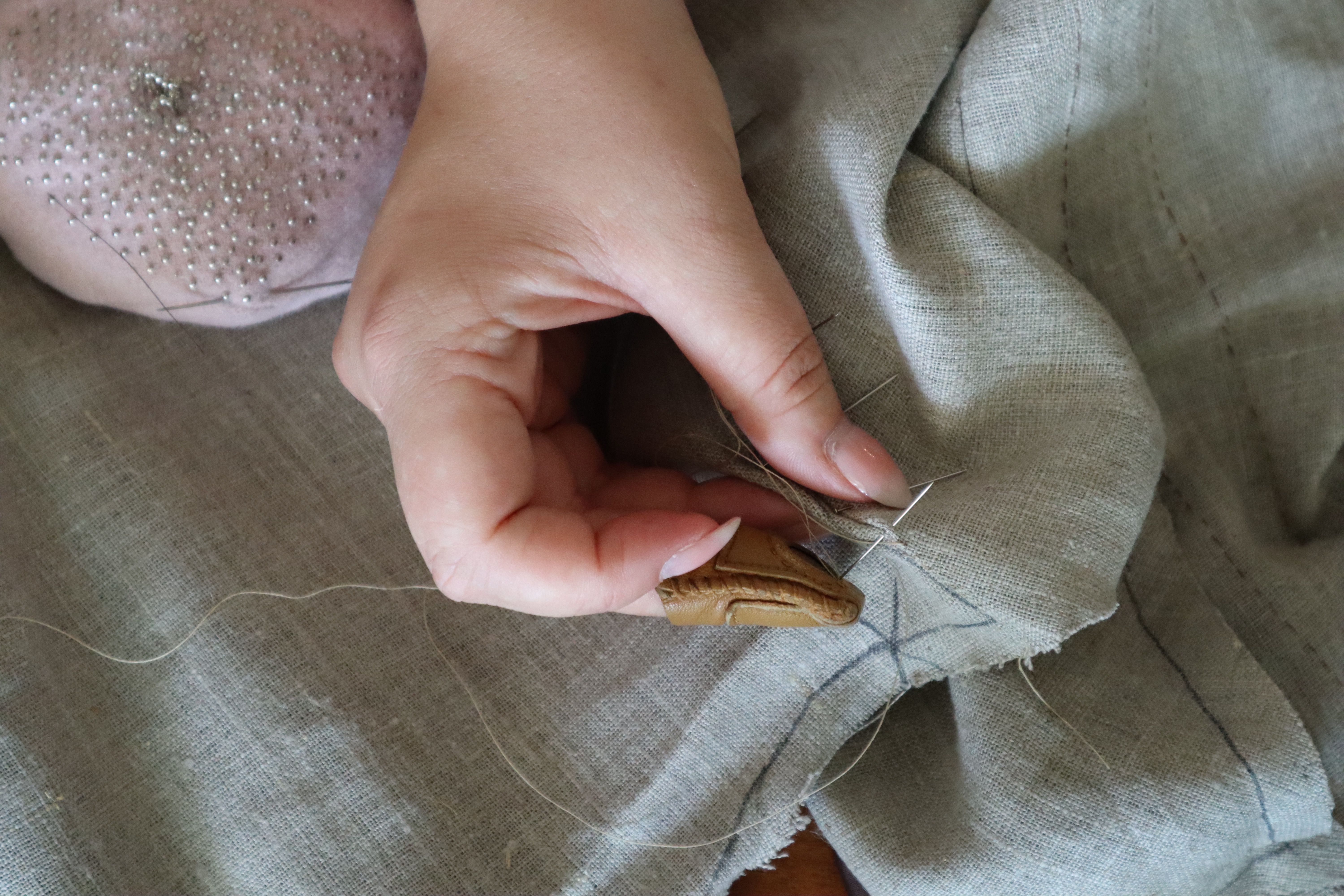 I then drew a line along the back of the lining, and stitched along it using tiny back stitches.